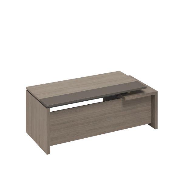 Комбинация древесного и однотонного декоров в столах руководителя, тумбах, шкафах.